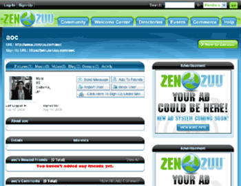 ZenZuuはSNSのmixiやブログのようなものです。 ZenZuuと他SNSの違いは、広告収入の一部を会員に還元してくれます。 2008年8月1日に正式オープンし編集画面はまだ英語ですが、今後日本語版も完成予定です。