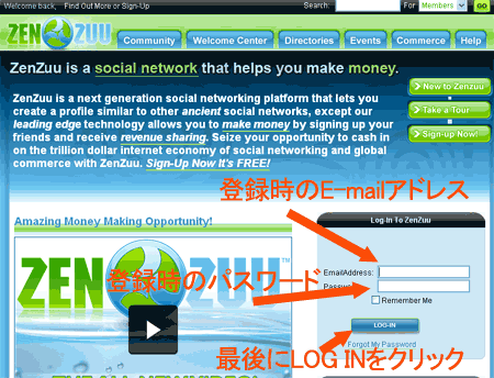 - 『LOG IN』ボタンをクリックして下さい。